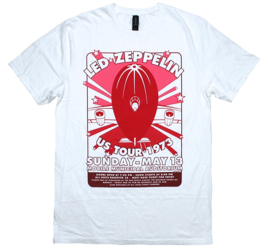 Led Zeppelin / US Tour 1973 - Mobile Municipal Auditorium Tee (White)